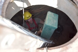 Nov. 5, 2019 210th EIS connects PSAB Airmen with the 210th Engineering Installation Squadron move fiber optic cable into place prior to running it to the next access point at Prince Sultan Air Base, Saudi Arabia on Nov. 5, 2019.