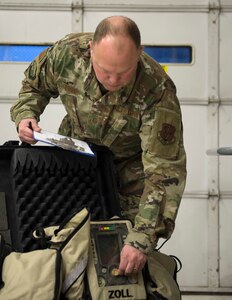 March 19, 2020 Checking Inventory U.S. Air Force Airmen from the 133rd Chemical, Biological, Radiological and Nuclear Defense (CBRN) Enhanced Response Force Package, complete an inventory check of the Zoll 731 Ventilators in St. Paul, Minn., Mar., 19, 2020